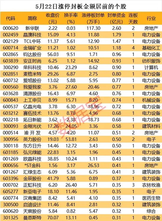 以封单金额计算,4股封单金额超1亿元,其中新华联、晶澳科技、TCL中环封单金额分别为2.6亿元、1.79亿元、1.47亿元。