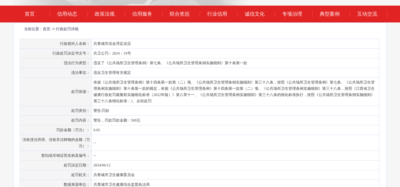 消息,近日,共青城市浴金湾足浴店因违反卫生管理有关规定,被共青城市卫生健康委员会警告,并罚款500元。