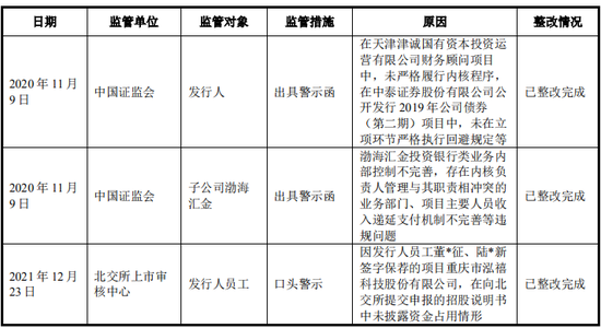 报告期内,发行人投行类项目存在被监管单位采取监管措施的情形,具体情况如下:
